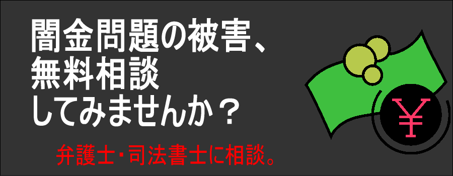 ヤミ金業者は金融詐欺(違法集団)ですので、弁護士・司法書士事務所へ相談するのが得策です。